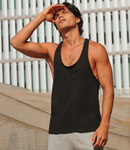 60% cotton/40% polyester.* Single jersey.Self fabric bound neckline and armholes.Racer back style.Side seams.Longer length.Twin needle straight hem.Tear out label.