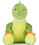 100% polyester. Soft plush green dinosaur.Sewn eyes.Contrast felt decoration.Light green coloured panel on tummy and feet.Removable inner pad (body only).Zip access for decoration onto front panel.Suitable for embroidery, print and sublimation.